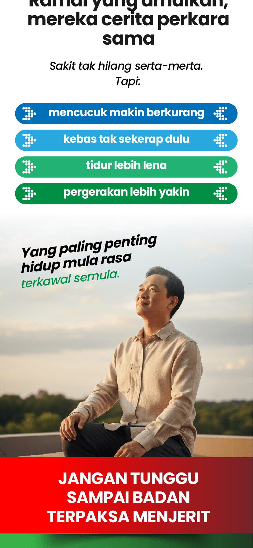 *PENAFIAN: Keberkesanan produk ini bergantung kepada kesesuaian individu. Setiap hasil dari penggunaan adalah berbeza bagi setiap individu. Produk ini akan memberi kesan terbaik sekiranya pengguna mengamalkan dengan cara betul berdasarkan banyak testimoni yang diperolehi. Kita berikhtiar, tuhan yang menyembuhkan.